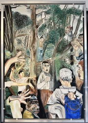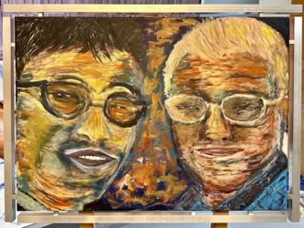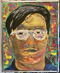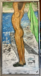 Selbstportrait, (Halbportrait) Die eine Hälfte. Die andere ist sehr ähnlich. Aber irgendwie ganz anders. Je nach Stimmung. Verschiedene Stimmen können alles ändern, verfälschen, richtig stellen, präzisieren oder verwirren und Stimmungsschwankungen heraufbeschwören. Nach oben beschwören und nicht nach unten lassen. Wer oben ist, kann nicht untergehen. Wer nicht untergehen will, muss nach oben. Daher ist der Himmel wahrscheinlich oben. Keiner will sterben, aber alle wollen im den Himmel. Ohne jetzt blasphemisch zu werden, aber wie soll das gehen? Darum, verlasse ich mich nicht ganz auf die Religionen. Mir scheint, es ist gut, wenn man auch mit sich selber im reinen ist. Wurden doch auch die Religionen, von fehlbaren Menschen erfunden.